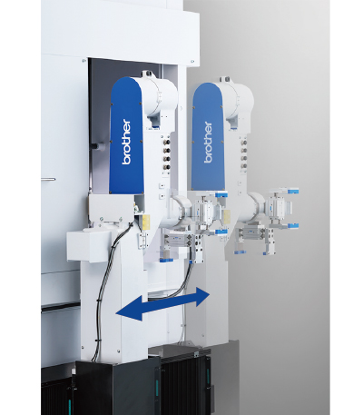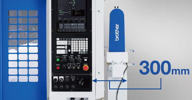 Since the controller is built-in, it saves space and eliminates the hassle of connecting wires, etc. - No wiring required to NC - NC and signal internally connected - Side door as standard equipment The TR axis of the loading system automatically opens and closes the side door.