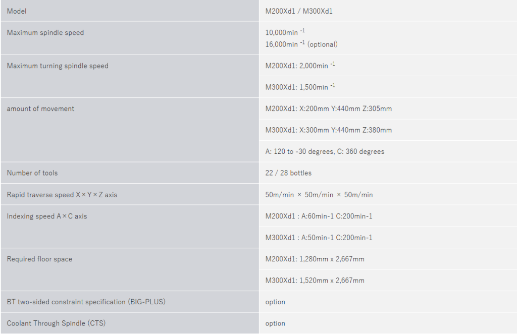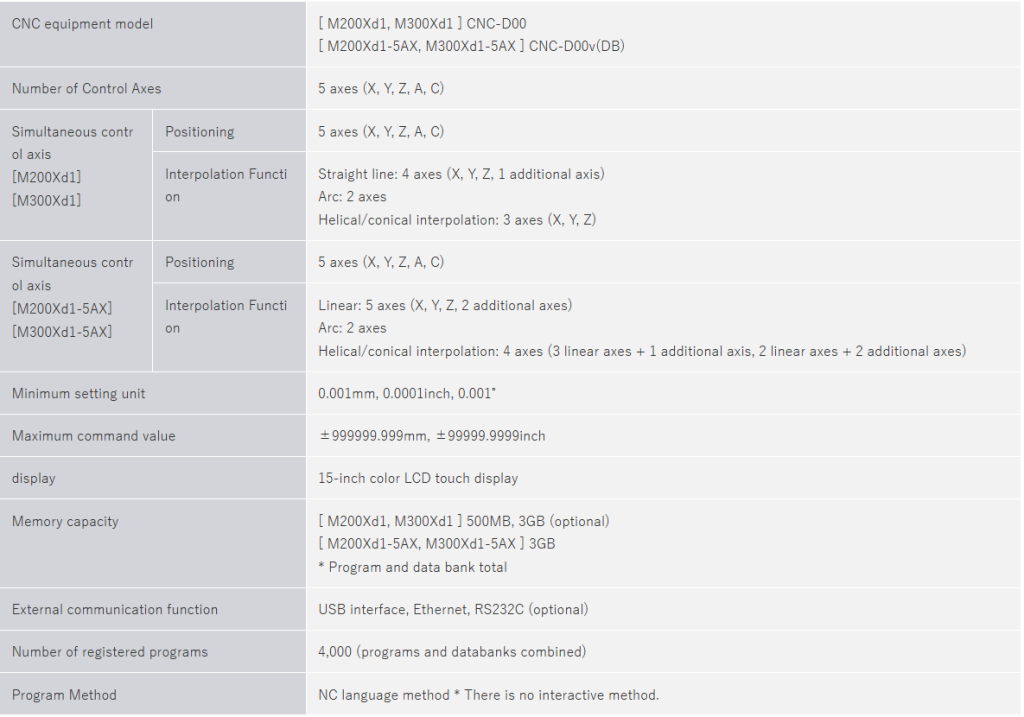 *3It is standard equipment on the M200Xd1-5AX and M300Xd1-5AX.