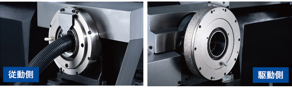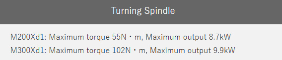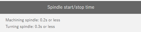 The low inertia spindle and high acceleration/deceleration spindle motor enable high-speed start/stop of the spindle. The turning spindle also uses a DD motor, achieving high acceleration/deceleration.