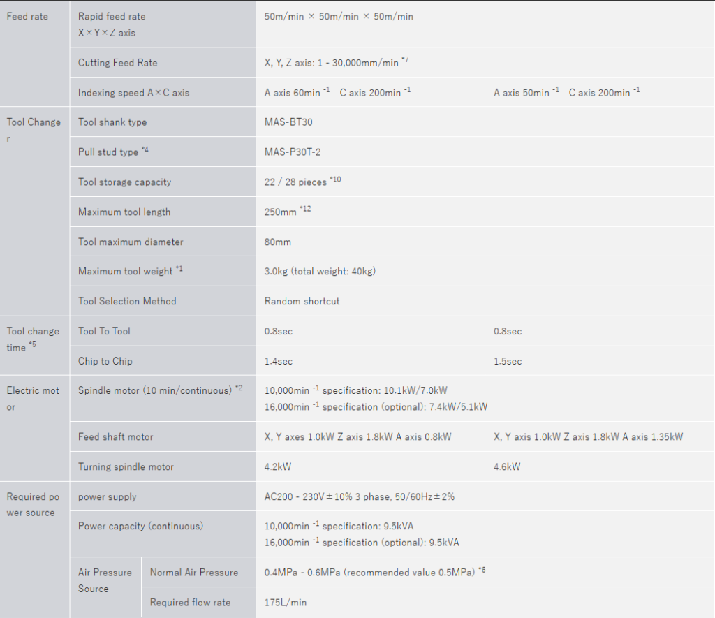 - *5The tool change time measurement method is based on JIS standard B6336-9 and MAS011-1987.