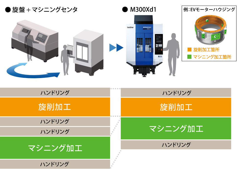 allows for efficient work in each process of setup, processing adjustment, production, and recovery, contributing to improved work efficiency and operating rates