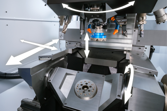 Equipped with a tilting rotary table that allows high-speed indexing, it enables process integration through multi-sided machining, offering the same benefits as combined machining.