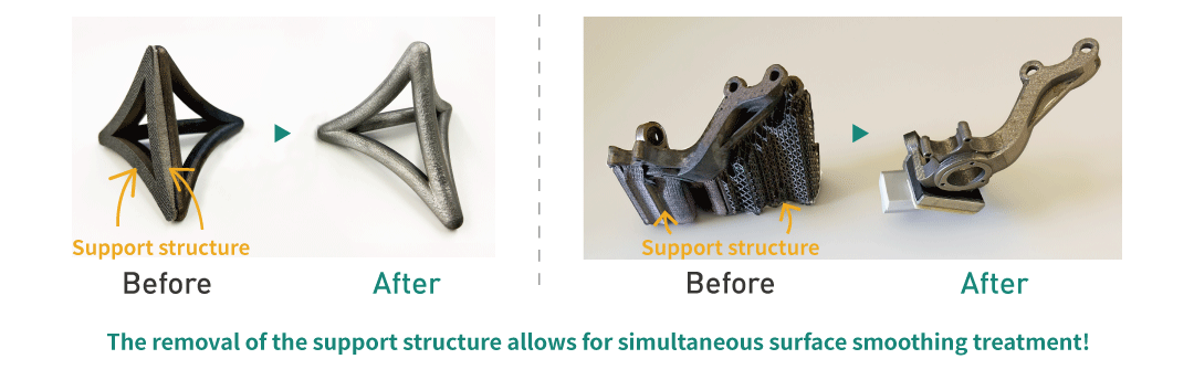 Conventionally, removal was often done manually, and post-removal polishing of the component surface was also necessary. However, with CASF, the removal of support structures and surface smoothing can be performed in a single pass.