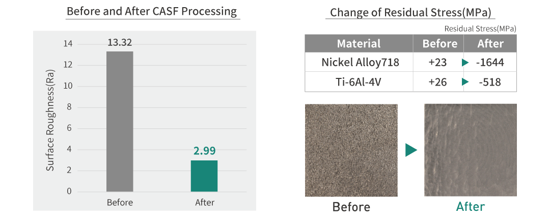 CASF process technology improves surface roughness , fatigue strength , and fatigue life by applying compressive stress.