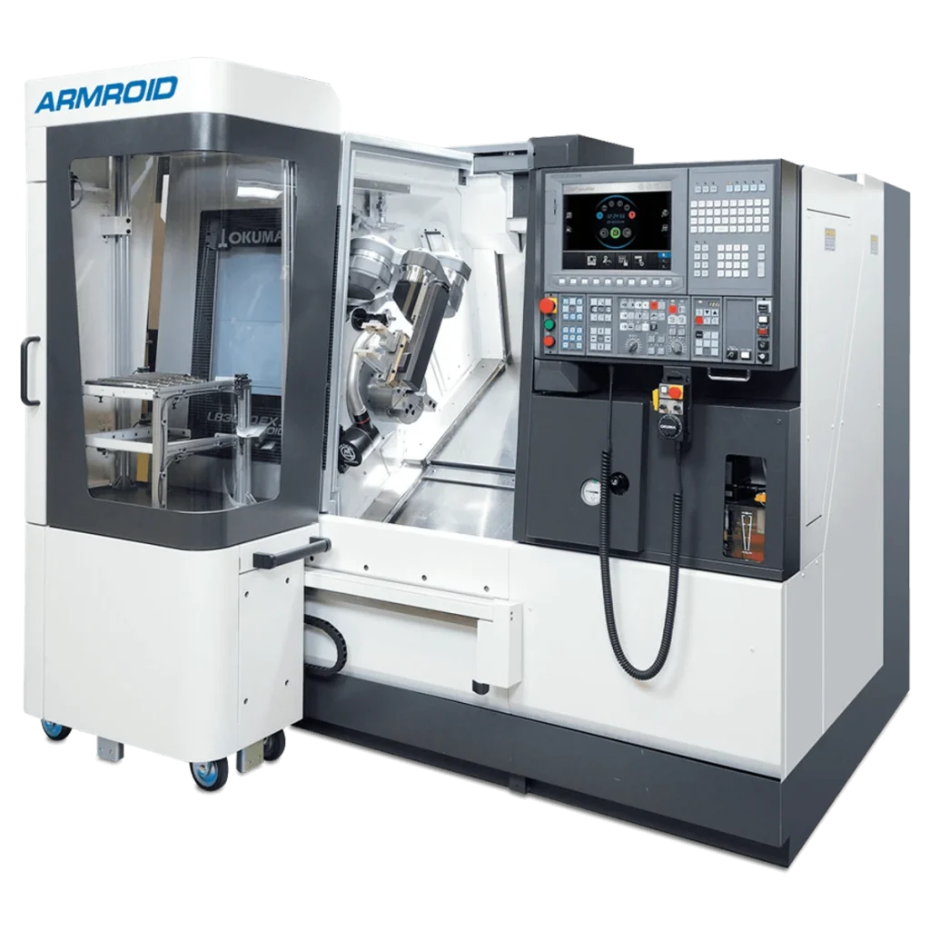 Part of Okuma’s ROID series, the ARMROID is a built-in robot packaged within the machine tool. ARMROID functionality includes part loading and unloading, chatter suppression, chip removal, and in-machine cleaning, ensuring that your Okuma machine is consistently operating at its highest efficiency.