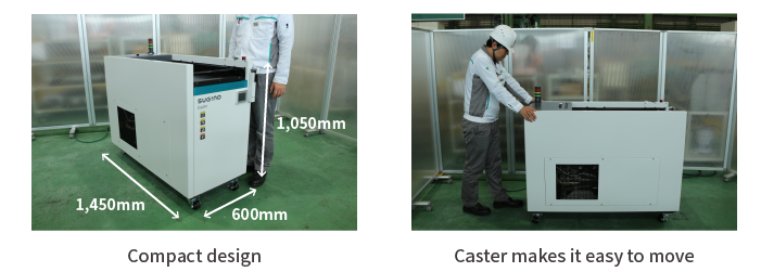 Equipped with castors, it is easy to relocate the machine. This compact vacuum dryer is easy for anyone to handle.