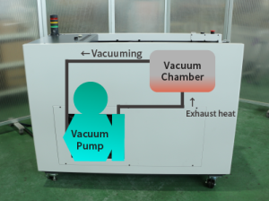 EVADRY uses the exhaust heat of the vacuum pump to raise the temperature inside the vacuum chamber and improve the drying degree.