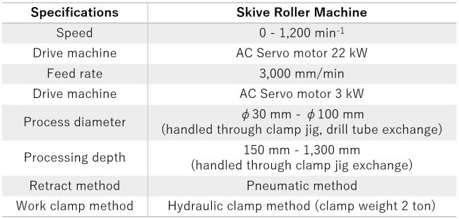 Sugino Vertical Skiving and Roller Burnishing Machine “Skive Roller Machine” provides an optimal finishing as well as bore sizing for hydraulic cylinders. It is capable of up to 1,300mm length.