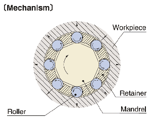 The mandrel cross-section is polygonal. Surface hardness is increased by the peening and rolling action caused by the protrusion of the roller, for a hardened, dense and highly durable surface.