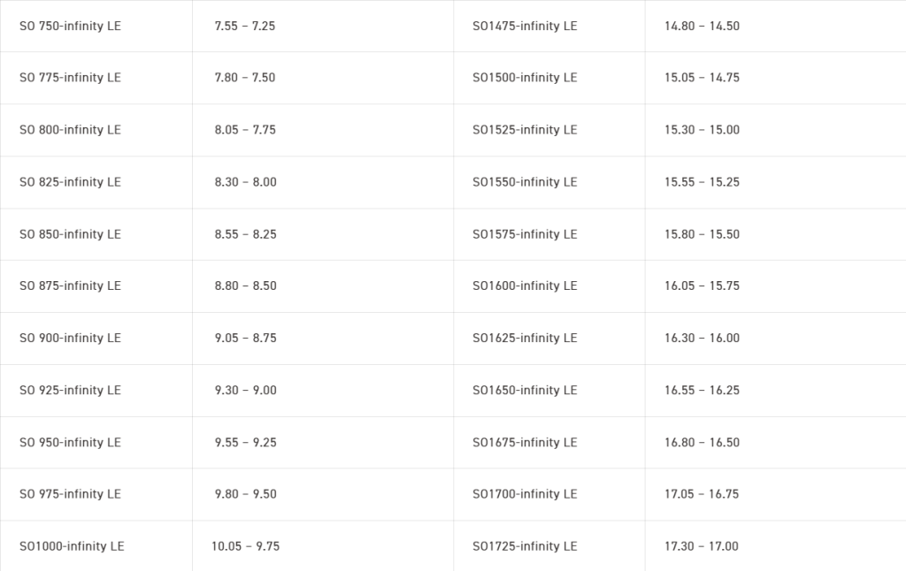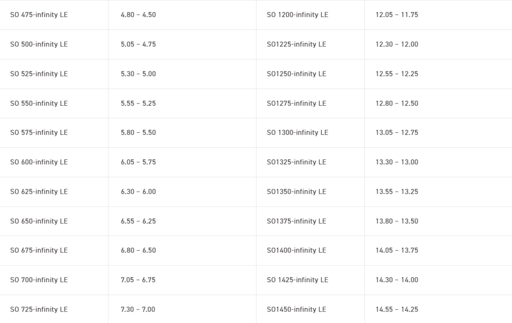 Selection chart (For hole sizeφ4.5-φ74)
