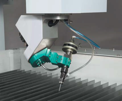 In addition to the XYZ drive axes, controlling the AB axis within a ±10° range has resolved the unique issues of “kerf taper” and “drag” associated with waterjet machining.