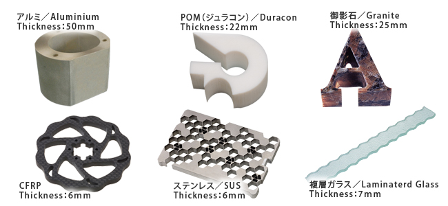 - Material processing: Process materials unsuitable for laser or plasma cutting without thermal alteration, and manufacture various test specimens.