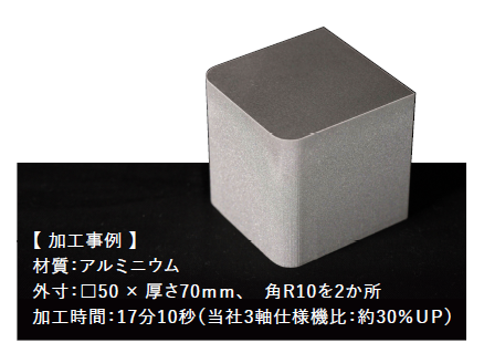 The 5-axis head, incorporating newly added A and B axes, along with an enhanced “taper correction” function, has achieved higher speeds while maintaining high-quality cut surfaces.
