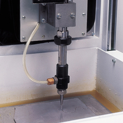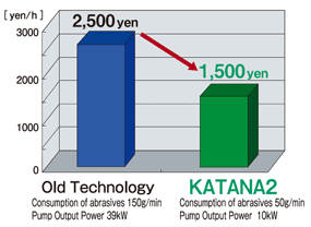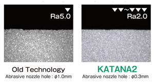By developing an ultrafine abrasive nozzle of Φ0.3 mm, it can process a cutting allowance as fine as 0.3mm.