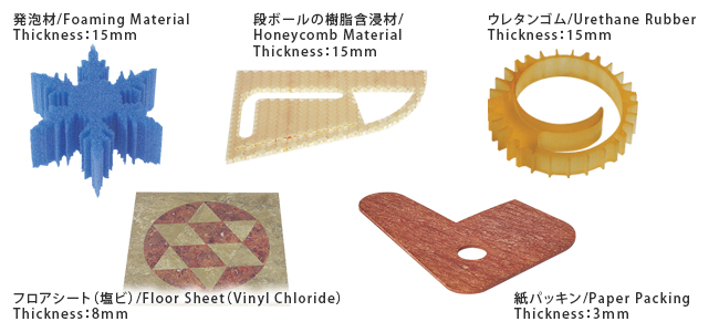 Glass, stainless steel, copper, CFRP, laminated materials, resin, rubber, foam, paper, etc…