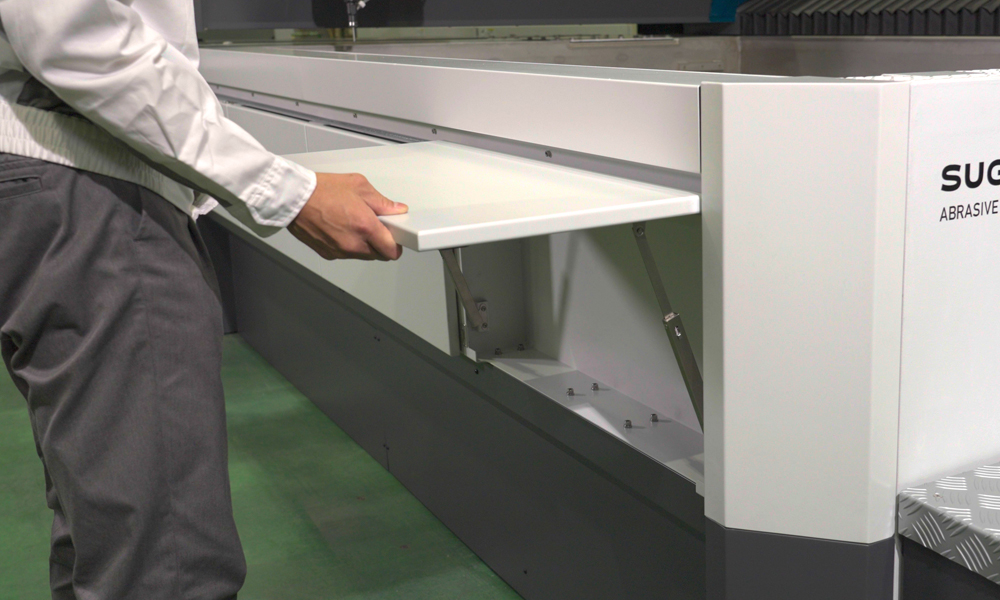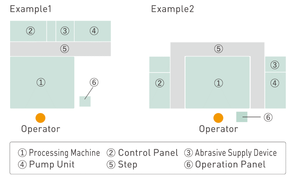 We have modularized the pump unit, abrasive supply device, control panel and piping cover step. This allows flexible layout adjustments to suit various working environments.