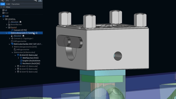 Tebis supports the entire process sequence, from electrode design to sinker EDM for shorter throughput time and greater reliability,. Electrodes must be used when milling in certain areas of a mold reaches its limit. Electrode design in Tebis supports convenient creation of the complete electrode and relieves the user of tedious routine tasks.