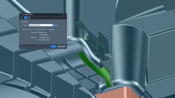 The required surfaces are extracted as a negative form with the click of a button. You can derive the further design of the entire burn geometries based on this.