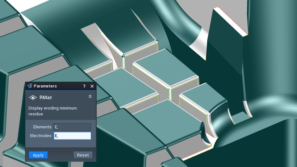 Integrated electrode design forms the basis for the automated electrode process. Reliable analysis allows you to automatically determine the eroding areas and extract burn surfaces with the click of a button. A wizard guides you through the design steps to complete the electrode. Tebis provides powerful CAD functions and libraries to finish the complete electrode.