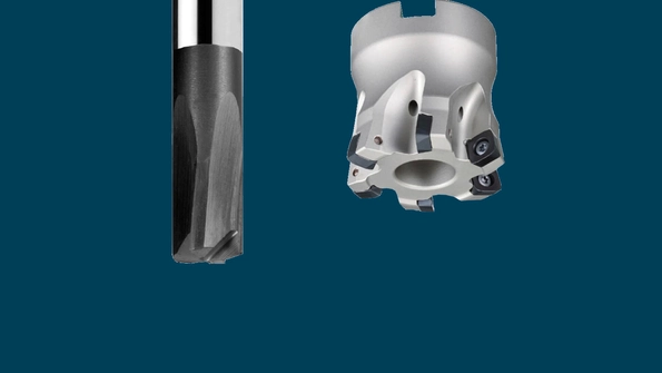 Two examples of high feed-rate cutters for HFC milling: A tool with four edges (left) and one with indexable inserts (right).