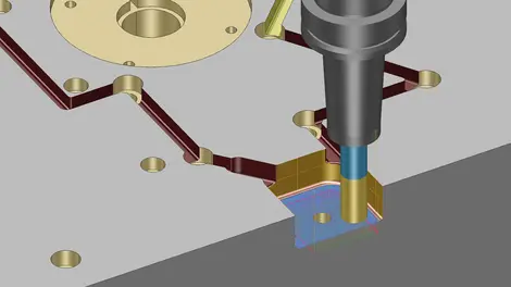 Adaptive trochoidal roughing strategies can be implemented in Tebis in 2.5D, 3D and 5-axis machining operations. The tool can be quickly repositioned, even at high feed rates. Integrated blank transfer enables a simple combination of all milling operations.