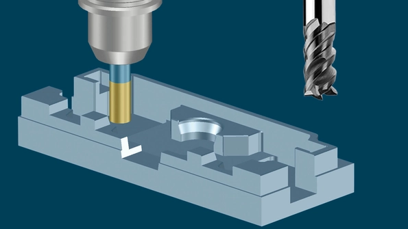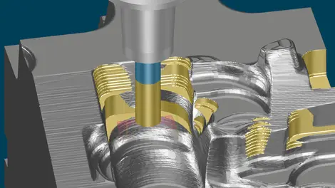 Full-cut avoidance is used in adaptive roughing. This is where it really counts: Compared with conventional roughing, special HPC cutters achieve extremely high material removal rates at constant cutting conditions with higher cutting speeds and feed rates, smaller lateral stepovers and very large cutting depths – and time savings of over 60 percent are easily possible. Adaptive roughing strategies for HPC milling are especially suitable for parts with many deep cavities. Hard materials can also be machined very easily in this way.