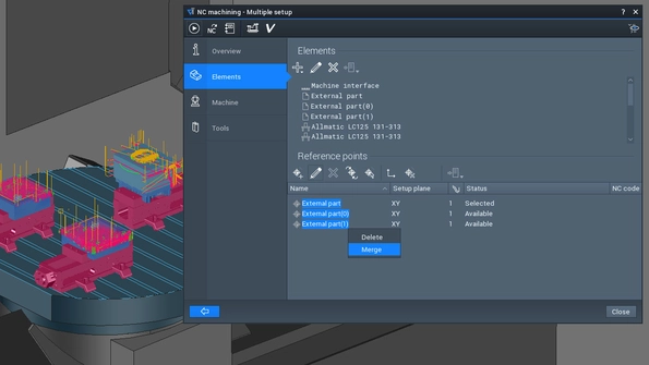 Sort the toolpaths according to your needs – for fast machining by tool or by part when a high degree of accuracy is required in the machining area – and link the individually-programmed toolpaths with an NC program. The overview of the required tooling configuration is automatically generated. You can also use multiple zero points if you need to operate with extremely high precision, or if you have long travel distances on your machine or long machining times.