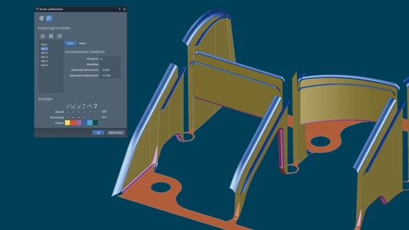 Automatically analyze the part and create extension and overrun surfaces. Suitable areas for slot milling are automatically detected and are subdivided in categories such as bottoms, flanks and radii.
