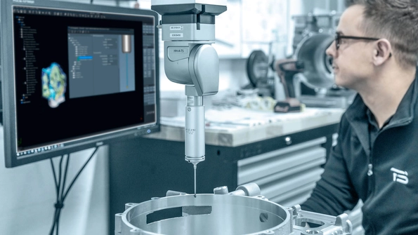Quickly and easily ensure part quality with your manually guided measuring machines. Manually controlled measuring machines can also be directly integrated in Tebis. After calibrating the probe, the measurement results are shown right on the measured geometry on the Tebis display. This enables a specified/actual comparison between the planned geometry and the finished workpiece.