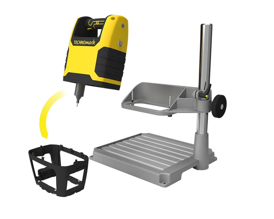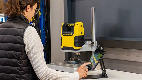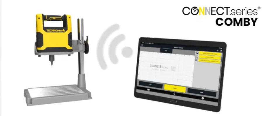 Comby’s equipment expands the Connect.series range with a versatile dot peen marking solution. This machine is a revolution in the marking industry, combining wireless use in portable mode with bench-top configuration when the marking head is set up on its column base. With its intuitive control via tablet, Comby brings a new dimension to industrial marking, offering the operator total freedom of movement while maintaining a fluid connection with the marking head. Discover a new approach to marking, where flexibility and performance combine to meet your most demanding needs.