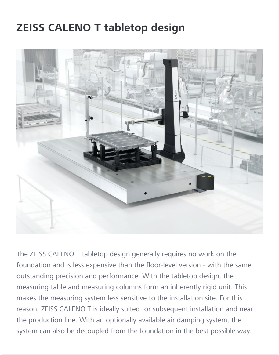 The new ZEISS CALENO T has been designed so that its improved Z-columns are compatible with the ZEISS PRO T measuring plate. By exchanging the column, a ZEISS PRO T can be converted to a ZEISS CALENO T with the latest ZEISS sensor technology.