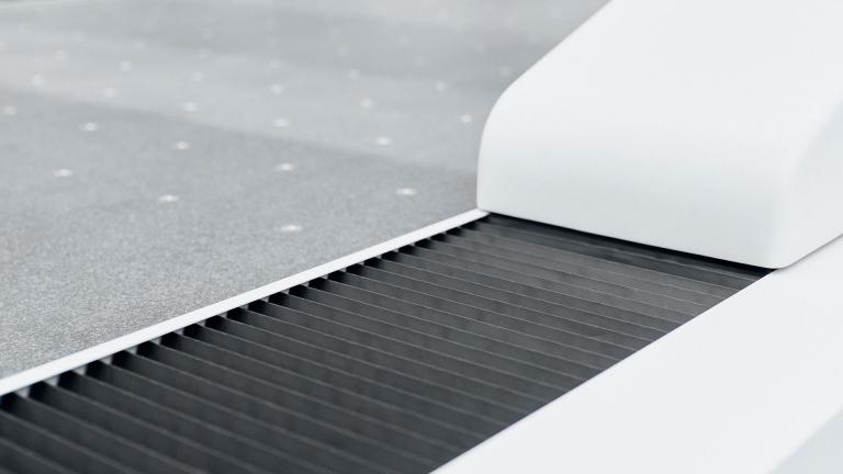 The Y guideways of the granite are covered and closed by bellows, providing increased robustness against dust and dirt. Further sturdiness is achieved by the silicon carbide ram, which, in addition to improved temperature stability, leads to a reduction in scratches on the surface of the ram.