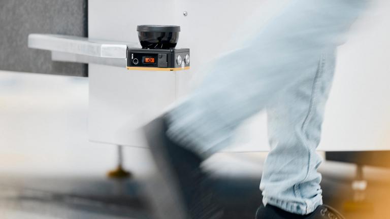 Laser scanners monitor a protection zone around the CMM. If the safety zone is breached, the CMM immediately slows down to a safe speed.