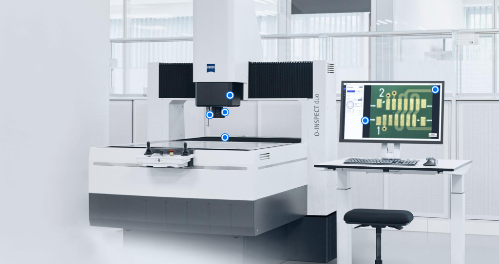 ZEISS O-INSPECT duo is a multisensory measuring machine and impresses with its high-resolution optics paired with the ZEISS VAST XXT tactile scanning sensor. The sensor enables fast and accurate 3D measurements by capturing a large number of measuring points in a single movement.