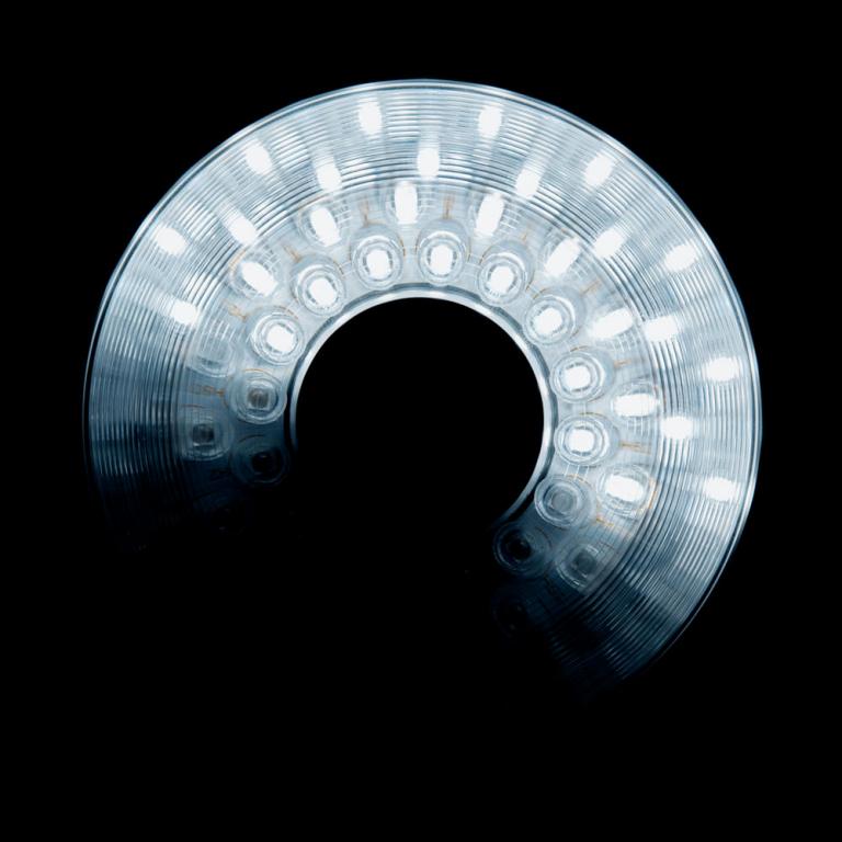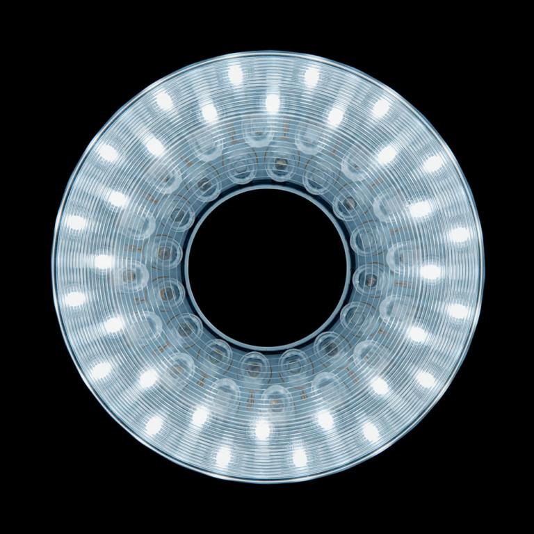 The LEDs of the outer ring light make it possible to filter out interfering ambient light. This provides benefits such as illuminating colored materials with high contrast.